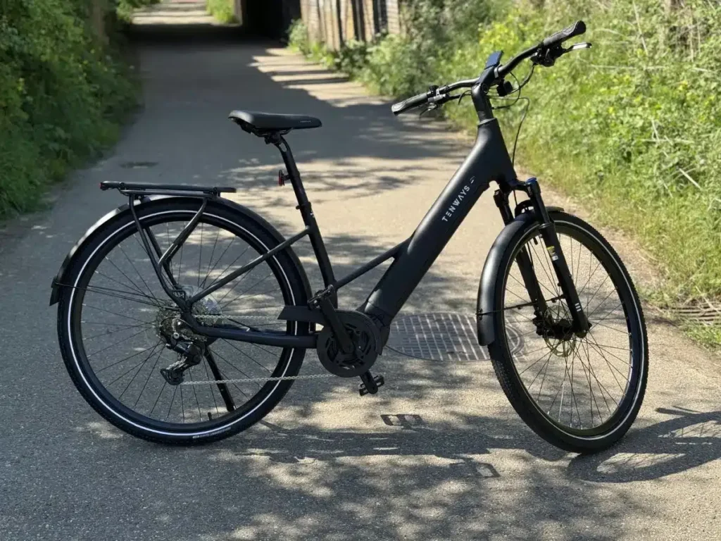 The first thing I noticed when I pulled the AGO Air out of the box was how much it deviates from the “minimalist” look of previous Tenways models. This is a robust, alloy-framed machine that prioritizes stability over pure aesthetics. The step-through geometry is excellent, offering a low standover height that made frequent stops at traffic lights much less of a chore. I found the frame stiffness to be impressive, especially when I was carrying a heavy set of panniers on the integrated MIK-compatible rear rack.