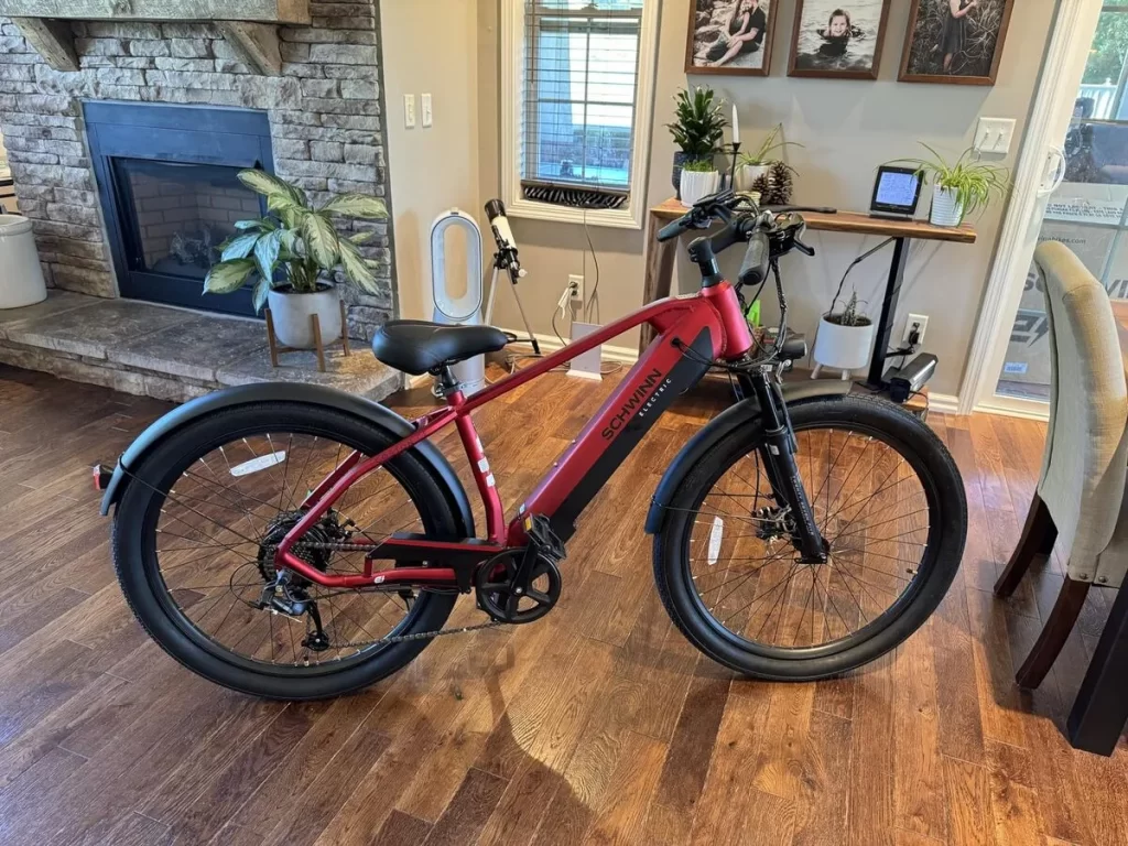 The Schwinn Coston is a comfortable and feature-rich e-bike designed for urban commuters. It comes with a 500W motor and a 48V 14Ah battery, offering a range of up to 50 miles. The bike includes features like integrated lights, a rear rack, and a comfortable saddle, making it a practical choice for daily use.